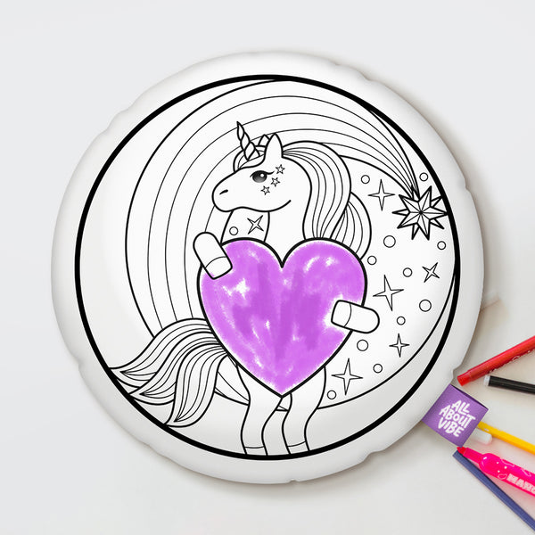 10" Unicorn Round Coloring Pillow